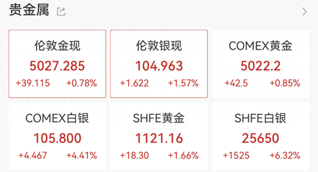 1月26日,现货黄金初次站上5000好意思元/盎司,再创历史新高,年内已涨超16%,高潮朝上700好意思元;COMEX黄金同步走强,同创历史新高。